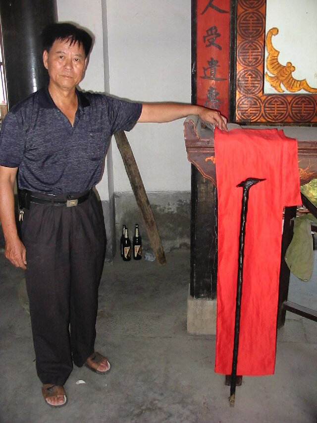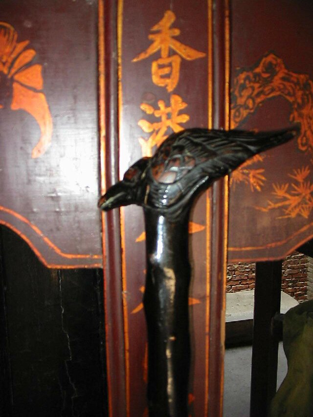 | The next 3 photos show the detail at the top of Pan Shiouw De's walking stick. This was given to Zo He Han ( see above ). This is a ceremonial fighting stick not a daily using stick. | |||